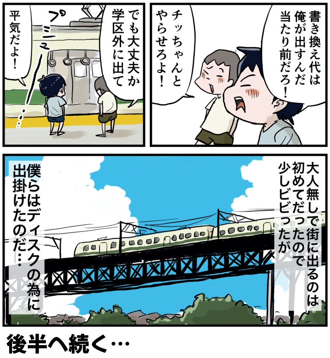 ディスク書き換えの旅(前編) 2021年08月15日 ディスク書き換えの旅(前編)当時ディスクシステムが発売された時は衝撃でしたね。だって自分のお小遣いで新しいゲームを手に入れることができるんですもん!普通のファミコンソフトは五千円程度しますからお誕生日とかクリスマスとかビックイベントがないと買ってもらうことはできなかったのに、この書き換えシステムを使えば五百円で新しいゲームが手に入りますからね!まさに夢のマシン!僕らにとっては時代が変わる革命的な瞬間でしたね 笑 ※後半に続きますのでお楽しみに! 「いくる(弟)」カテゴリの最新記事 タグ :#漫画#マンガ#懐かしい#あの頃#思い出#絵日記#ファミコン#ゲーム < 前の記事次の記事 > コメント コメント一覧 (7) 1. 2021年08月15日 15:49 ディスクシステムか…持ってる子少なかったな この時代にゲーム機を買ってもらえる家は本当に裕福ですよ 0 仲曽良ハミ がしました 3. 仲曽良 2021年08月16日 11:54 >>1 高価なおもちゃでしたね! 0 仲曽良ハミ がしました 2. ひろし 2021年08月16日 01:52 ディスクシステムなつかしい!! 当時リンクの冒険にすごくハマってました。 0 仲曽良ハミ がしました 4. 仲曽良 2021年08月16日 11:55 >>2 名作ですね! 0 仲曽良ハミ がしました 5. たまきち 2021年08月17日 18:29 ディスクシステム…バレーボール おもろかったなー 0 仲曽良ハミ がしました 6. 仲曽良 2021年08月18日 10:45 >>5 僕も持ってましたよ! 面白かったですね! 0 仲曽良ハミ がしました 7. 所ジョージ 2023年11月20日 07:28 やればやるほどディスクシステム! 0 仲曽良ハミ がしました コメントフォーム 名前 コメント 記事の評価 リセット リセット 顔 星 情報を記憶 コメントを投稿する