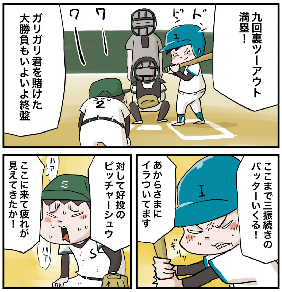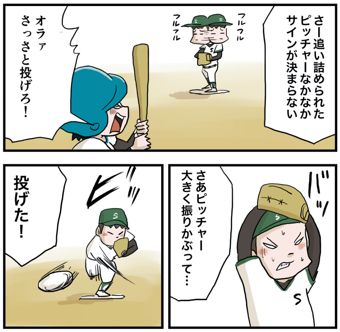 打てるもんなら打ってみろ! 2021年09月05日 打てるもんなら打ってみろ!昭和の野球盤ですね!下に穴があいて落ちる消える魔球があったんです。絶対打てないからナシにして遊ぶんですけどここぞってとこで絶対やるんです…喧嘩になりますね。懐かしい… 笑 「いくる(弟)」カテゴリの最新記事 タグ :#漫画#マンガ#懐かしい#あの頃#思い出#絵日記#野球#野球盤#オモチャ < 前の記事次の記事 > コメント コメント一覧 (14) 1. 昼寝部 2021年09月05日 07:38 カーブは、砂鉄をこっそり置き手を読んだり。 0 仲曽良ハミ がしました 6. 仲曽良 2021年09月05日 22:45 >>1 なるほど…磁石ですもんね 0 仲曽良ハミ がしました 2. そうた 2021年09月05日 08:00 禁じ手でたー!この技は絶対使っちゃいけないルールだったな。バ◯ダイさんはなぜこの機能を付けたのか今でもナゾですw 0 仲曽良ハミ がしました 7. 仲曽良 2021年09月05日 22:46 >>2 多分球種としてはフォークなんでしょうね 0 仲曽良ハミ がしました 3. 知らなんだなぁ 2021年09月05日 08:56 消える魔球は振らなければボールの判定になるそうな😳 子供の頃は知らなかった☺️ 0 仲曽良ハミ がしました 8. 仲曽良 2021年09月05日 22:46 >>3 振ってしまう悔しさ☺️ 0 仲曽良ハミ がしました 4. ゴロー 2021年09月05日 11:38 ↑そうそう、振らなければボールにしてましたよね?? 0 仲曽良ハミ がしました 9. 仲曽良 2021年09月05日 22:47 >>4 ボール! 0 仲曽良ハミ がしました 5. もひお 2021年09月05日 11:43 ひと打席一球だけとか縛りルール採用してたわ 0 仲曽良ハミ がしました 10. 仲曽良 2021年09月05日 22:48 >>5 ルールないと喧嘩になりますね☺️ 0 仲曽良ハミ がしました 11. 2021年09月06日 04:06 野球盤懐かしい。今の野球盤は実況とか音が出て進化し過ぎてビックリです 0 仲曽良ハミ がしました 12. 仲曽良 2021年09月06日 17:09 >>11 最新も遊んでみたいです! 0 仲曽良ハミ がしました 13. 大谷一平 2024年05月06日 21:13 玉浮かす技もできるらしい 0 仲曽良ハミ がしました 14. 昭和生まれのおじさん 2024年07月26日 03:54 野球盤の消える魔球は落ちっぱなを叩くと場外ホームラン打てたりもしました。難易度MAXですが(版のバージョンにも依ると思う)。 また通常ピッチングはレバーを引っ張って離すことでバネの力で投球するので長く引けば速球、半分引けばスローボール、なのですがバネなど無視してレバーを指で弾くととんでもない豪速球が投げられてこれはほぼほぼ打てませんでしたので禁止にしてましたね(因みにこの豪速球も超集中力でバットに当てれば場外ホームランになる事もありました)。 0 仲曽良ハミ がしました コメントフォーム 名前 コメント 記事の評価 リセット リセット 顔 星 情報を記憶 コメントを投稿する
