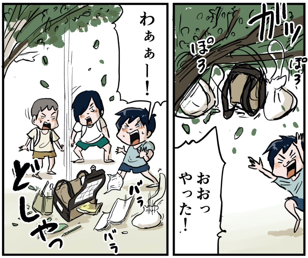 必要なのはパワーだ! 2021年09月06日 必要なのはパワーだ!あの頃、給食袋とか体操着袋とかいつも振り回して遊んでました。ランドセルも雑に扱ってましたが6年間しっかり壊れなかったです…すげーな…今の子はこんなことしませんね。アホでごめんなさい…。 「いくる(弟)」カテゴリの最新記事 タグ :#漫画#マンガ#懐かしい#あの頃#思い出#絵日記#男子 < 前の記事次の記事 > コメント コメント一覧 (19) 1. あきち 2021年09月06日 07:21 題名が… 戸◯呂弟のセリフみたい…笑笑 0 仲曽良ハミ がしました 6. 仲曽良 2021年09月06日 17:09 >>1 確かにw 0 仲曽良ハミ がしました 9. あきち 2021年09月06日 17:12 >>6 ご理解に感謝( ´ ▽ ` ) 0 仲曽良ハミ がしました 2. 小太郎108 2021年09月06日 07:28 僕も身に覚えがあります... でもランドセルって本革で丈夫でしたよね。 そこは現代よりも胸を張れますよ! ただ、そのぶん高価な物をブン回してたなぁっていう 感謝と謝罪が入り混じりますね... 0 仲曽良ハミ がしました 7. 仲曽良 2021年09月06日 17:10 >>2 6年間頑張ってくれましたね ありがとうランドセル! 0 仲曽良ハミ がしました 3. そうた 2021年09月06日 08:10 いくるくんは考え方はそれでもいいんだけど、実行が伴ってないと言うか、浅はかと言うか…。失敗して伸びるタイプですねw 0 仲曽良ハミ がしました 8. 仲曽良 2021年09月06日 17:12 >>3 はい!たくさん失敗しました!😆 0 仲曽良ハミ がしました 4. 雪見大福餅 2021年09月06日 10:16 最近ファンになった者です。 いくる君みたいな男の子、好感が持てますね。 我が家にも3男児がいますが、いくる君みたいな逞しい子に育って貰いたいです。 これからも、応援しています。 0 仲曽良ハミ がしました 10. 仲曽良 2021年09月06日 17:13 >>4 ありがとうございます! 応援よろしくお願いします!😂 0 仲曽良ハミ がしました 5. 昭和55年生まれ 2021年09月06日 11:15 ポストちびまる子ちゃんやな! アニメ化になるまで言い続ける! 0 仲曽良ハミ がしました 11. 仲曽良 2021年09月06日 17:14 >>5 ありがとうございます アニメになるまで頑張る! 0 仲曽良ハミ がしました 12. 2021年09月06日 18:32 やっぱ男の子はこうやってランドセルが傷だらけになるんですよね 私が小学生の頃はランドセルを押し潰し踏み潰しでぺたんこにする男子が多かったです 0 仲曽良ハミ がしました 15. 仲曽良 2021年09月07日 05:28 >>12 いましたね ぺたんこの上級生w 0 仲曽良ハミ がしました 13. 💙💗かおる💗💙 2021年09月06日 18:39 わいは中学生なったらランドセルを寄付する気でいたので、丁寧に使ってましたww 0 仲曽良ハミ がしました 16. 仲曽良 2021年09月07日 05:28 >>13 偉い! 0 仲曽良ハミ がしました 14. 男の子ですね〜! 2021年09月07日 02:32 ランドセルって 上に座られたり、無理くり引っ張られたり、地べたに投げられたりと あれでよく6年間無事にもってくれたよな〜と、今にして思います。 (田舎育ちのアラフィフ女です) 自分も遊んでるうちに忘れて置き去りにして帰っちゃったりしてましたが、 最近親戚の叔母さんから、息子さんがランドセルに池の魚を水ごと入れて帰って来たと いう話を聞いて、これには負けたな〜と思いました。 0 仲曽良ハミ がしました 17. 仲曽良 2021年09月07日 05:29 >>14 池の魚!! すごい!強者ですねw 0 仲曽良ハミ がしました 18. からすけ 2021年09月07日 08:21 ランドセル、懐かしいですね。私は担任の先生に頼まれて卒業の時に差し上げた記憶があります。息子さんのランドセルが壊れたとのことで代わりを探していると言うことでした。しかし壊れるってなんやねん。いくる君みたいにやんちゃやった言うことでしょうか。大事に使ってもらえたのならいいなとふと思い出しました。 0 仲曽良ハミ がしました 19. 仲曽良 2021年09月07日 17:22 >>18 ヤンチャな男の子なら壊れるかもですねw 0 仲曽良ハミ がしました コメントフォーム 名前 コメント 記事の評価 リセット リセット 顔 星 情報を記憶 コメントを投稿する