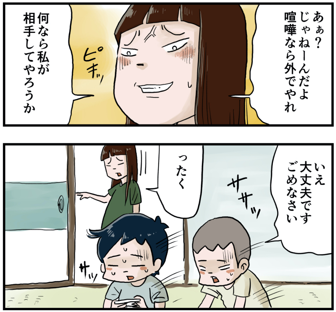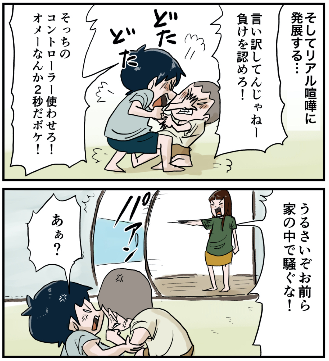 ゲームはいつも本気だぜ(前編) 2021年09月22日 ゲームはいつも本気だぜ(前編)ファミコンの対戦ゲームの名作は僕の中ではキ◯肉マンでしょうか。彼らの様にかなり熱くなるもんだからうるさい…そしてケンカになりますw さあこの後ドラクエをやる様ですが仲良く遊べるのでしょうか?続きもお楽しみに! 「いくる(弟)」カテゴリの最新記事 タグ :#漫画#マンガ#懐かしい#あの頃#思い出#絵日記#ファミコン#キン肉マン#ゲーム < 前の記事次の記事 > コメント コメント一覧 (25) 1. ナシ大好き 2021年09月22日 08:52 ゲームチャットでの暴言キッズ元祖w 0 仲曽良ハミ がしました 2. 仲曽良 2021年09月22日 09:04 >>1 いろいろ言ってみたい年頃☺️ 0 仲曽良ハミ がしました 3. 昭和な女 2021年09月22日 10:41 命は大事だね。 ふと、いくるとお姉ちゃんはいくつ離れているのか気になった! いくるとシュウ、ドラクエで何が始まるのー!?😆 0 仲曽良ハミ がしました 12. 仲曽良 2021年09月23日 09:29 >>3 命は大事です! 0 仲曽良ハミ がしました 4. chi 2021年09月22日 12:23 現在のシュウくんとの関係性もいつか漫画で見たいです☺️ 0 仲曽良ハミ がしました 13. 仲曽良 2021年09月23日 09:30 >>4 なるほどそういうのもみたいのですねw 0 仲曽良ハミ がしました 5. 昭和55年生まれ 2021年09月22日 12:51 姉ちゃん、殺っちゃってよ! 0 仲曽良ハミ がしました 14. 仲曽良 2021年09月23日 09:30 >>5 全くだ! 0 仲曽良ハミ がしました 6. にーだ 2021年09月22日 17:03 シュウ、その必殺技は キ●肉ドライバーね。 0 仲曽良ハミ がしました 15. 仲曽良 2021年09月23日 09:31 >>6 間違えました! にーだ?さん? 0 仲曽良ハミ がしました 7. みやも 2021年09月22日 20:09 ダボ!って😂初めて聞いた! 0 仲曽良ハミ がしました 10. と 2021年09月23日 00:40 >>7 マジレスするとダボハゼの だぼ かと。言う人いますよ。 0 仲曽良ハミ がしました 11. みやも 2021年09月23日 07:43 >>10 へぇ!! めちゃ気になってたのでマジレスありがとうです!! 0 仲曽良ハミ がしました 20. 仲曽良 2021年09月23日 09:39 >>11 😂 0 仲曽良ハミ がしました 19. 仲曽良 2021年09月23日 09:38 >>10 おおお!そうなんですね! 0 仲曽良ハミ がしました 16. 仲曽良 2021年09月23日 09:32 >>7 ブッコミ用語です! 0 仲曽良ハミ がしました 25. ひまじん 2022年07月16日 11:18 >>16 ひき肉にしてやろうかもブッコミ用語ですね😙 0 仲曽良ハミ がしました 8. そうた 2021年09月22日 20:21 宿敵(ライバル)にキン肉マンを使わせるとは。いくるくんも優しくなりましたな。 0 仲曽良ハミ がしました 17. 仲曽良 2021年09月23日 09:33 >>8 同じ種類の必殺技同士ですしねw 0 仲曽良ハミ がしました 9. クララ 2021年09月22日 21:01 しかし、口が悪いな… まあ、言いたいこと言い合える仲なんだけど。 さすがに姉ちゃんには冷静な対応(笑) 0 仲曽良ハミ がしました 18. 仲曽良 2021年09月23日 09:35 >>9 全く口が悪いですな! 姉ちゃんも大変…w 0 仲曽良ハミ がしました 21. 2021年09月24日 05:05 昔のファミコンゲームは対戦系で喧嘩になる事多かったなぁ コントローラー引っ張り過ぎてソフトがバグってお開きになったりもしましたわ 0 仲曽良ハミ がしました 22. 仲曽良 2021年09月24日 12:09 >>21 泣きそうなくらい悔しいですもんねw 0 仲曽良ハミ がしました 23. 57年 2021年10月07日 22:58 ブロッケンjrは使用禁止になりましたよね 0 仲曽良ハミ がしました 24. 仲曽良 2021年10月09日 17:39 >>23 反則ですもんねあれ! 0 仲曽良ハミ がしました コメントフォーム 名前 コメント 記事の評価 リセット リセット 顔 星 情報を記憶 コメントを投稿する