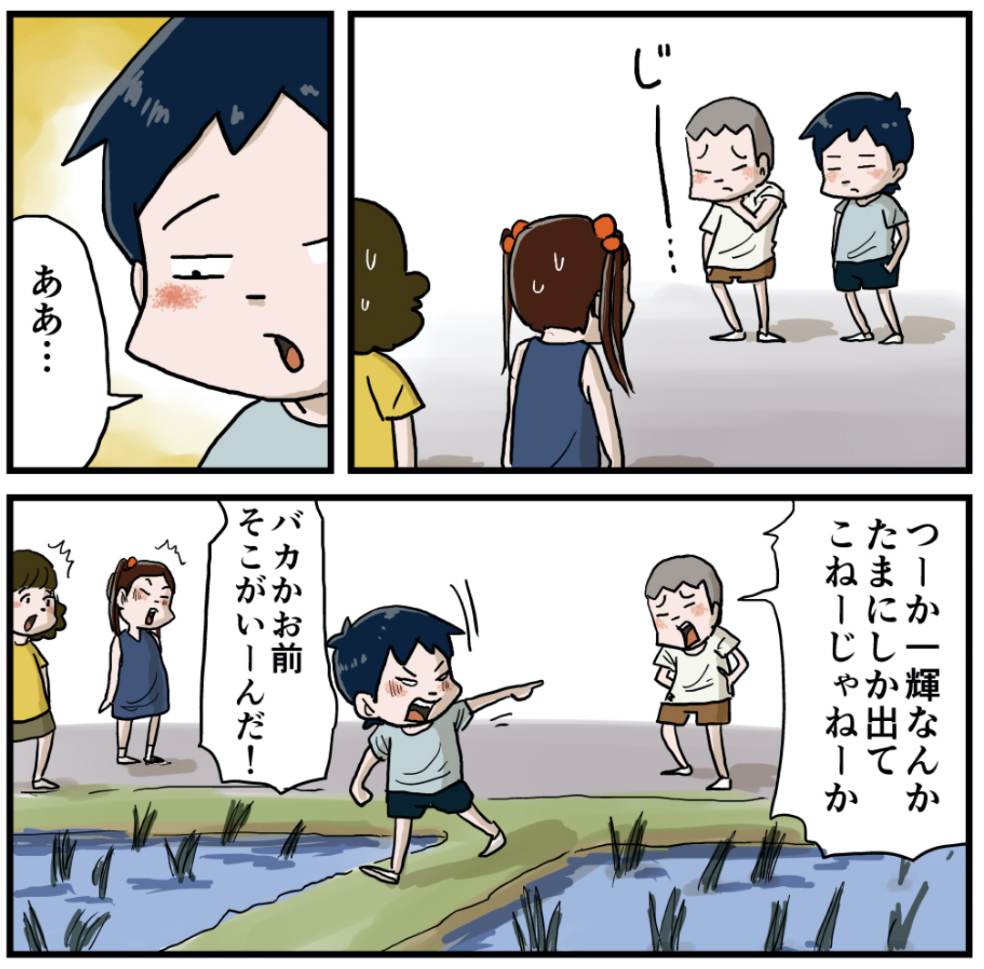 田んぼに落ちたマッキー(後編) 2021年10月02日 前の話(前編) 田んぼに落ちたマッキー(後編)いくるとシュウは無自覚かもしれませんが、時々この様に男前な一面を見せる二人です。アニメの話の方がこいつらにとってはメインですので意識は二の次でやっているのでしょうけど、恩着せがましくなくていいですねw なんかこの二人らしいかっこよさが描けて嬉しかったです。 「マッキー」カテゴリの最新記事 タグ :#漫画#マンガ#懐かしい#あの頃#思い出#絵日記#畦道#近道 < 前の記事次の記事 > コメント コメント一覧 (55) 1. クララ 2021年10月02日 07:19 いくるかっけぇ… 無自覚で当たり前のような行動が男らしい! マッキーに乙女心が芽生えたかな♥️ 0 仲曽良ハミ がしました 26. 仲曽良 2021年10月04日 21:36 >>1 芽生えたかな?w 0 仲曽良ハミ がしました 2. ワクワク 2021年10月02日 07:21 いい男達やで〜。このまま大きくなって欲しいです。 0 仲曽良ハミ がしました 27. 仲曽良 2021年10月04日 21:37 >>2 男前ですねw 0 仲曽良ハミ がしました 3. あきち 2021年10月02日 07:44 やっぱりね… まぁ、読めてましたよ… カッコいいなぁ…笑 0 仲曽良ハミ がしました 28. 仲曽良 2021年10月04日 21:37 >>3 さすが、お見通しですかw 0 仲曽良ハミ がしました 4. そうた 2021年10月02日 07:44 ホレた。アキラを缶蹴りに誘った時と同じくらいのインパクトだ。こりゃマッキーに告白されるのも時間の問題か? 0 仲曽良ハミ がしました 29. 仲曽良 2021年10月04日 21:38 >>4 アキラの話も読んでくれたのですね!嬉しいw 0 仲曽良ハミ がしました 5. ひろぺそ 2021年10月02日 07:52 ステキ男子だなぁ こんなの惚れちゃうじゃないの! 私の初恋はアンドロメダ瞬でした 0 仲曽良ハミ がしました 30. 仲曽良 2021年10月04日 21:38 >>5 瞬が最強という説もありますw 0 仲曽良ハミ がしました 6. アラフォー 2021年10月02日 07:56 やだ!! いくる君達めちゃくちゃイケメンすぎる!! これはマッキー惚れちゃう!! 0 仲曽良ハミ がしました 31. 仲曽良 2021年10月04日 21:39 >>6 イケメンですね! 0 仲曽良ハミ がしました 7. アユマジロ 2021年10月02日 08:45 無自覚なのがカッコイイ👍✨ これは絶対好きになってまうやつやん😆 0 仲曽良ハミ がしました 32. 仲曽良 2021年10月04日 21:39 >>7 なってしまうんですかねw 0 仲曽良ハミ がしました 8. 昭和55年生まれ 2021年10月02日 09:10 さりげない優しさ! 0 仲曽良ハミ がしました 33. 仲曽良 2021年10月04日 21:40 >>8 無自覚!w 0 仲曽良ハミ がしました 9. 名無しの権兵衛 2021年10月02日 09:10 カッコいい〜!!😆 0 仲曽良ハミ がしました 34. 仲曽良 2021年10月04日 21:40 >>9 ですね☺️ 0 仲曽良ハミ がしました 10. ごぞ 2021年10月02日 09:11 かっこよすぎて! 0 仲曽良ハミ がしました 35. 仲曽良 2021年10月04日 21:40 >>10 男前ですね! 0 仲曽良ハミ がしました 11. 昭和な女 2021年10月02日 09:13 いくる・シュウ、期待以上! キュンキュンだぁー!♥️ ナイスコンビネーションすぎて… 無意識なの?これ無意識なの? マッキーみたいな子は、そんな優しさにやられるのよ、きっと♥️ 0 仲曽良ハミ がしました 36. 仲曽良 2021年10月04日 21:41 >>11 こいつらは無意識でしょうね…w 0 仲曽良ハミ がしました 12. ちる 2021年10月02日 09:29 こいつらほんとカッコいい!! 最高か! 0 仲曽良ハミ がしました 37. 仲曽良 2021年10月04日 21:42 >>12 最高ですか!ありがたい! 0 仲曽良ハミ がしました 13. ジェダイの騎士 2021年10月02日 10:49 アンタたち最高にかっこいいよ! 0 仲曽良ハミ がしました 38. 仲曽良 2021年10月04日 21:42 >>13 また最高いただきました! 0 仲曽良ハミ がしました 14. みんみ 2021年10月02日 10:52 ほ、ホレた。漢だねぇ。 0 仲曽良ハミ がしました 39. 仲曽良 2021年10月04日 21:42 >>14 男前ですよねw 0 仲曽良ハミ がしました 15. 凸と凹 2021年10月02日 11:27 漢字が変わった。 でも読み直すくらい好き! 0 仲曽良ハミ がしました 40. 仲曽良 2021年10月04日 21:43 >>15 ばれました 笑 0 仲曽良ハミ がしました 16. 雪見大福餅 2021年10月02日 11:58 聖闘士星矢、高校生の時にドハマリしました。 後1人、青銅聖闘士はキグナス氷河が居ましたね。 私事で恐縮ですが、私は黄金聖闘士のスコーピオンのミロに一目惚れでした(*´ω`*) 何度も何度も、ビデオを繰り返し観ていましたね。 フェニックス一輝は、アンドロメダ瞬のお兄さんなんですよね。 全員美形キャラで、ハマっていて楽しかったです。 いくる君もシュウ君も本当に可愛いです。 これからも懐かしいアニメネタを楽しみにしております。 0 仲曽良ハミ がしました 41. 仲曽良 2021年10月04日 21:44 >>16 ミロかっこいいですよね スカーレットニードルですね! 0 仲曽良ハミ がしました 17. みつえもん 2021年10月02日 12:41 廬山昇龍覇!! 0 仲曽良ハミ がしました 42. 仲曽良 2021年10月04日 21:44 >>17 大きな声でありがとうございます! 0 仲曽良ハミ がしました 18. 恵美 2021年10月02日 13:26 おっとこまえーー:*(〃∇〃人)*: 「ホレてまうやろーー!!」 0 仲曽良ハミ がしました 43. 仲曽良 2021年10月04日 21:44 >>18 惚れてまいますね! 0 仲曽良ハミ がしました 19. だいこんさん 202