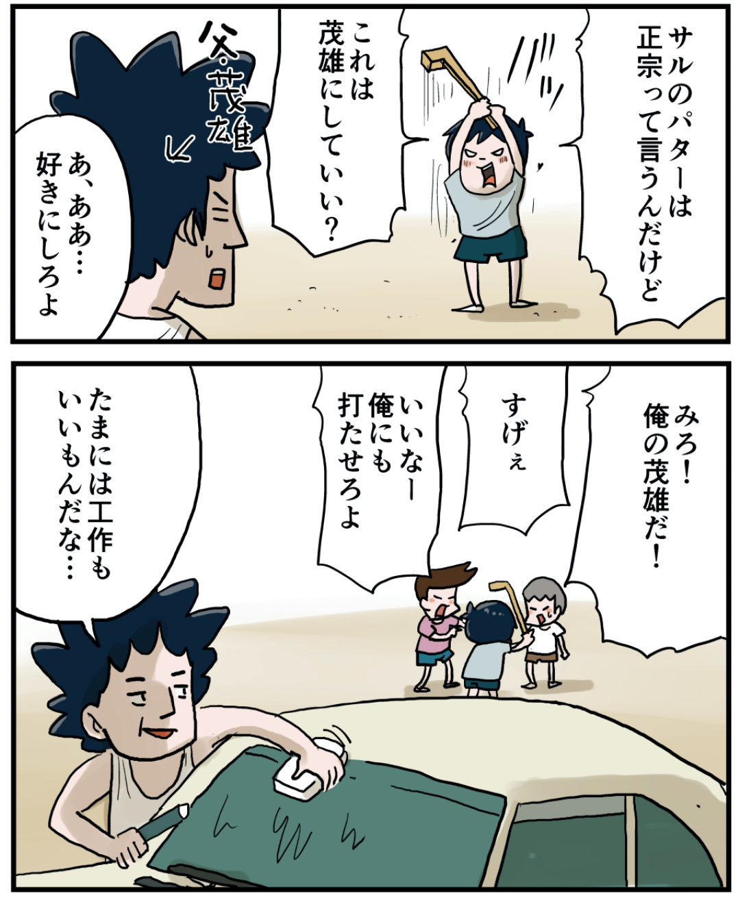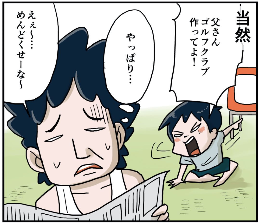ゴルフクラブを作ってもらったぜ!(前編) 2021年10月08日 ゴルフクラブを作ってもらったぜ!(前編)庭に穴掘ってゴルフコースを作って遊んでましたよ。庭のコースに飽きると家から公園までをコースにしました。当然途中普通の道もありますのでボールはドブに落ちてなくなりました…笑 「いくる(弟)」カテゴリの最新記事 タグ :#思い出#懐かしい#父さん#ゴルフ#プロゴルファー猿 < 前の記事次の記事 > コメント コメント一覧 (24) 1. おーちゃん 2021年10月08日 18:07 懐かしい〜 僕はプラスチックのボールとクラブでやったなぁ 友達の家の近くの広い駐車場で😅 続きが楽しみ 0 仲曽良ハミ がしました 13. 仲曽良 2021年10月09日 17:40 >>1 プラスチックのセット売ってましたよねw 0 仲曽良ハミ がしました 2. おせちピッチャー 2021年10月08日 18:18 嫌な予感しかしないです🤣 0 仲曽良ハミ がしました 14. 仲曽良 2021年10月09日 17:40 >>2 ほんとですね☺️ 0 仲曽良ハミ がしました 3. アーノルド・パーマン2号も遅れるな 2021年10月08日 18:28 やりましたねえ。 家族の誰もゴルフしないのに何故か練習用ボールが大量にあって 近所の養鶏場跡で拾ってきた板切れでコンコンコンコンと。 コンクリの地面にあちこち穴が開いていて好都合。 T、Y君、憶えてる? 0 仲曽良ハミ がしました 15. 仲曽良 2021年10月09日 17:41 >>3 わかります!なぜかボールはあるw 0 仲曽良ハミ がしました 4. あきち 2021年10月08日 18:39 「旗包」を観せてくれるのかな笑(^^) 0 仲曽良ハミ がしました 16. 仲曽良 2021年10月09日 17:41 >>4 凄技ですね! 0 仲曽良ハミ がしました 5. いち 2021年10月08日 19:11 プロゴルファー猿…懐かしい♥ 旗包に憧れて、ちょいゴルフ好きになった時代ですな… で… 父ちゃんのドライバーは打った瞬間にバラバラの姿が見える…(笑) 前の銃バラバラ事件みたいに… 0 仲曽良ハミ がしました 17. 仲曽良 2021年10月09日 17:42 >>5 予言ですね…☺️ 0 仲曽良ハミ がしました 6. 愛車はスーパーカー消しゴム 2021年10月08日 19:16 最後の2マスが、壮大なフリにしか見えねぇ😆 0 仲曽良ハミ がしました 18. 仲曽良 2021年10月09日 17:42 >>6 最後の2コマ…w 0 仲曽良ハミ がしました 7. かしいさえ 2021年10月08日 20:14 何を言い出すのかと戦々恐々としてるお父さんが微笑ましい 笑 0 仲曽良ハミ がしました 19. 仲曽良 2021年10月09日 17:43 >>7 いつも突然言い出しますからねw 0 仲曽良ハミ がしました 8. そうた 2021年10月08日 20:20 ゴルフクラブは茂雄でいいとして、ボールは何を使うんだろう。もしかして… 0 仲曽良ハミ がしました 20. 仲曽良 2021年10月09日 17:43 >>8 もちろん本物のゴルフボールですw 0 仲曽良ハミ がしました 9. アルマジロ 2021年10月08日 21:10 面倒くさがりながらもちゃんと作ってくれて 良い父ちゃんだな〜😊 いくるの家族、ホント好き💖 0 仲曽良ハミ がしました 21. 仲曽良 2021年10月09日 17:44 >>9 ありがとうございます! お父さん優しいですよねw 0 仲曽良ハミ がしました 10. ナシ大好き 2021年10月08日 22:26 秘技!モズ落とし!!! 0 仲曽良ハミ がしました 22. 仲曽良 2021年10月09日 17:44 >>10 飛んでるモズを落とすかの様なショット! 0 仲曽良ハミ がしました 11. 2021年10月09日 03:23 思い切り打って壊れそうな予感… 0 仲曽良ハミ がしました 23. 仲曽良 2021年10月09日 17:45 >>11 思い切り振るでしょうねこいつは…w 0 仲曽良ハミ がしました 12. あ 2021年10月09日 05:06 父ちゃんは長嶋が活躍してる頃に産まれたのかな やっぱ今年産まれた子は翔平が多いんやろか 0 仲曽良ハミ がしました 24. 仲曽良 2021年10月09日 17:46 >>12 そうかもしれません😳 0 仲曽良ハミ がしました コメントフォーム 名前 コメント 記事の評価 リセット リセット 顔 星 情報を記憶 コメントを投稿する