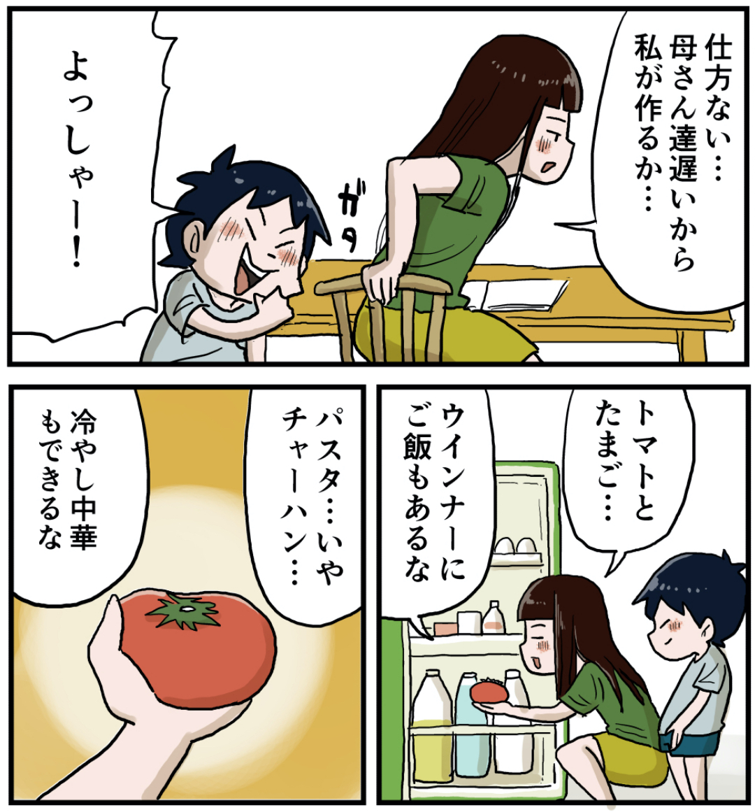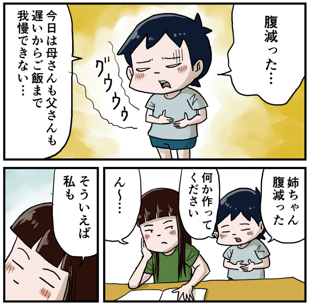姉ちゃんにご飯を作ってもらうぜ 2021年10月15日 姉ちゃんにご飯を作ってもらうぜ母さんと父さんの帰りが遅い時は、姉ちゃんがご飯を作ってくれる時がありました。チャーハンとかラーメンとかチャーハンでした。それを見て僕も一人でラーメンを作れる様になりました。美味しかったです。 「いくる(弟)」カテゴリの最新記事 タグ :#思い出#懐かしい#姉ちゃん#ご飯 < 前の記事次の記事 > コメント コメント一覧 (16) 1. だいち 2021年10月15日 12:38 わかる(笑)ご飯作るの異様に面倒な時あるある。 しかし…しなのちゃんトマト丸齧りとは豪快🤣 あと作ってくださいって敬語になるいくるくんも可愛い。 0 仲曽良ハミ がしました 9. 仲曽良 2021年10月16日 22:30 >>1 下手に出たいくるにこの仕打ちw 0 仲曽良ハミ がしました 2. しなのといくる最高かよ 2021年10月15日 12:45 命の危機(空腹)を感じて素直にしなのちゃんに作ってくださいとお願い出来るいくる君、素晴らしいですね!! 冷やし中華やパスタ、チャーハンなんかで期待させといてからのトマト丸かじりで落としてくるしなのちゃんも可愛い笑 トマトって水分あるからお腹に結構たまるんですよね笑 0 仲曽良ハミ がしました 10. 仲曽良 2021年10月16日 22:31 >>2 急にめんどくさくなったんでしょうねw 0 仲曽良ハミ がしました 3. まぐるー 2021年10月15日 13:15 うちは、土曜日の昼に姉弟二人だけ っていうパターンが よくありました。 そういう時は、「ご飯+ケチャップ+ちぎりベビーチーズ」とか「食パン+バター+とろけるチーズ」とか、炭水化物+油脂。 今では危険すぎて、食べられません。 0 仲曽良ハミ がしました 11. 仲曽良 2021年10月16日 22:31 >>3 炭水化物ばっかでしたねw 0 仲曽良ハミ がしました 4. ssk 2021年10月15日 13:25 頼み方が丁寧だ笑 0 仲曽良ハミ がしました 12. なかそら 2021年10月16日 22:32 >>4 ご飯かかってますからw 0 仲曽良ハミ がしました 5. 岡もっちゃん 2021年10月15日 14:52 それでも作ってあげるお姉ちゃんっていいなあ。 うちのお兄ちゃん…作ってはくれるけど、味が壊滅的だったし、自分だけしか作らんの。 それだから、お兄ちゃんの分を作ることあった。 うちのこ、姉と弟はまだ姉の方が料理修行中。姉の作るものはたまになんも言わず食べることもあるし、食べないときもある。 将来的に料理は男でも作れるようにならないと、困るし。 0 仲曽良ハミ がしました 13. 仲曽良 2021年10月16日 22:33 >>5 頑張れお兄ちゃんw 0 仲曽良ハミ がしました 6. 昭和55年生まれ 2021年10月15日 15:58 姉ちゃんは時々優しい 0 仲曽良ハミ がしました 14. 仲曽良 2021年10月16日 22:34 >>6 時々ですねw 0 仲曽良ハミ がしました 7. そうた 2021年10月15日 21:10 さすがトマトを直でかぶりつく最強のゴリラはわかってるね。TKGが最強のインスタントフードという事を。いくるもそこは否定してないしw 0 仲曽良ハミ がしました 16. 仲曽良 2021年10月16日 22:40 >>7 まあ豪快な姉ですw 0 仲曽良ハミ がしました 8. 2021年10月16日 04:15 めんどくせで終わらすお姉ちゃんヨシ! 0 仲曽良ハミ がしました 15. 仲曽良 2021年10月16日 22:39 >>8 よし!!1 0 仲曽良ハミ がしました コメントフォーム 名前 コメント 記事の評価 リセット リセット 顔 星 情報を記憶 コメントを投稿する