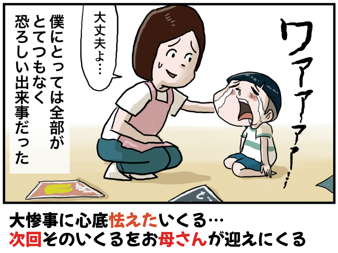 母さんの背中(その3) 2021年10月20日 最初から 母さんの背中(その3)今思えはこんなに繊細な情けない奴がよくあんなにたくましく成長したなと思います。きっと家族の特にお姉ちゃんの指導があったからなのかもしれません…とはいえいつも何も言わずに助けてくれたのはお母さんだったよに思います。 「いくる(弟)」カテゴリの最新記事 タグ :#思い出#懐かしい#お母さん#保育園 < 前の記事次の記事 > コメント コメント一覧 (13) 1. はむ 2021年10月20日 12:28 次回が楽しみです! でも、泣いちゃうかも…😣 0 仲曽良ハミ がしました 5. 仲曽良 2021年10月20日 16:44 >>1 ありがとうございます! 0 仲曽良ハミ がしました 2. sk 2021年10月20日 12:35 母親は偉大だったって、歳を重ねてから思うのよね 0 仲曽良ハミ がしました 6. 仲曽良 2021年10月20日 16:45 >>2 大人になると強く感じますねw 0 仲曽良ハミ がしました 3. 昭和55年生まれ 2021年10月20日 14:17 姉ちゃんの鉄拳制裁の おかげで、いくるは強くなったのね。 0 仲曽良ハミ がしました 7. 仲曽良 2021年10月20日 16:45 >>3 それはあるかもしれませんw 0 仲曽良ハミ がしました 4. よぅちゃん 2021年10月20日 15:28 幼いなりに自分の正義があるんですよね♬ 誰も悪くないよ♬ ただ受け入れる器が まだ小さいだけ( ^ω^ ) この衝突は必要なんだよね♬ なくちゃならない衝突♬ そうやって器大きくしていこうね♬ 0 仲曽良ハミ がしました 8. 仲曽良 2021年10月20日 16:46 >>4 全くその通りです 経験値が器を大きくしますね♪ 0 仲曽良ハミ がしました 9. そうた 2021年10月20日 21:40 いくるは基本的に争い事が嫌いな子なんだね。コルトパイソンでしなのを撃破しようとしてたけどw 0 仲曽良ハミ がしました 10. 仲曽良 2021年10月21日 18:05 >>9 この頃は色々怖がってますねw 0 仲曽良ハミ がしました 11. ふろっけ 2021年10月21日 18:33 いくるクンを助けてくれた女の子が握った小魚を「お食べ」 「さあ早く」ってセリフがツボです( ^ω^ ) 0 仲曽良ハミ がしました 12. 仲曽良 2021年10月27日 00:22 >>11 きっとポッケに入れてた奴ですよ笑 0 仲曽良ハミ がしました 13. あは 2021年11月13日 16:19 助けてくれた強い女の子 うさぎ背負ってる・・・ もしかしてマッキー??笑 おやつ交換の回でウサギのシャツ着てたしね 0 仲曽良ハミ がしました コメントフォーム 名前 コメント 記事の評価 リセット リセット 顔 星 情報を記憶 コメントを投稿する