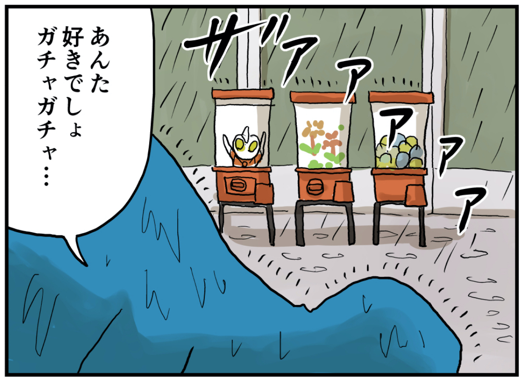 母さんの背中(その4) 2021年10月21日 母さんの背中編を最初から読む 母さんの背中(その4)土砂降りの中、お母さんはいくるの好きなガチャガチャまで連れてきてくれました。お母さんとしてはどんな嫌なことがあったのか話したくもないいくるを少しでも楽しませようとしてくれたのでしょう…今日は特別ってことはいつもはなかなか買ってもらえない様子ですね 笑 「いくる(弟)」カテゴリの最新記事 タグ :#思い出#懐かしい#お母さん#保育園#雨#ガチャガチャ < 前の記事次の記事 > コメント コメント一覧 (14) 1. クララ 2021年10月21日 12:34 嫌な想い出はそれぞれだけど、泣きすぎて二回も嘔吐するとは… いくるは一見、何も考えていないように見えて繊細な心を持っている。 やっぱり、お母さんの影響なのかな。 0 仲曽良ハミ がしました 7. 仲曽良 2021年10月21日 18:07 >>1 意外にも幼少の頃は繊細ですねw お母さんに似てるかもですね 0 仲曽良ハミ がしました 2. まるこ 2021年10月21日 12:40 泣いたお母さん素敵すぎる 0 仲曽良ハミ がしました 8. 仲曽良 2021年10月21日 18:08 >>2 ありがとうございます! 0 仲曽良ハミ がしました 3. 昭和55年生まれ 2021年10月21日 13:38 母ちゃんの優しさやね。 無償の愛ってやつです。 0 仲曽良ハミ がしました 9. 仲曽良 2021年10月21日 18:08 >>3 お母さん優しいですよねw 0 仲曽良ハミ がしました 4. のりたま 2021年10月21日 14:47 小学生の頃足首捻ってずっと足引きずって生活してたら、頑張ってるからって母が特別に小学館の小学二年生の雑誌?漫画?を買ってくれたことを思い出しました… 0 仲曽良ハミ がしました 10. 仲曽良 2021年10月21日 18:09 >>4 小学二年生!付録が楽しい奴ですね! 0 仲曽良ハミ がしました 5. 羨ましい 2021年10月21日 17:30 お母さん優しい。 私は転校してから新しい学校に馴染めず、人見知りも災いしてイジメられるようになった。 中学校でも引きずり、さらにエスカレートしていった。 話を聞いてほしくて訴えるも耳すら貸さずあんたが悪いと言い放った母。 一生忘れない。 だから今でも弱音は吐けない。 本当に辛い時は誰にも言えず病んだ。 0 仲曽良ハミ がしました 11. 仲曽良 2021年10月21日 18:10 >>5 辛い時は泣きましょう… 0 仲曽良ハミ がしました 6. そうた 2021年10月21日 18:05 さすが母ちゃん。息子の好きなものを知ってるねー。しかも好きな物も色々知ってて、自然とTPOで使い分けてるんだよね。時には他人や父ちゃんとも戦ったりして息子にとって母さんは偉大だ。 0 仲曽良ハミ がしました 12. 仲曽良 2021年10月21日 18:12 >>6 好きなもの知ってるんですよね…いつも見ていてくれてるんでしょうね。 0 仲曽良ハミ がしました 13. りちゃん 2021年10月21日 20:58 母を思い出して涙が出ました…。 私はいくるくんと同じ世代なので、全てを懐かしく読ませてもらっています。 いやぁ涙が止まりません。母は強くて優しかったです。 0 仲曽良ハミ がしました 14. 仲曽良 2021年10月27日 00:23 >>13 母は強いですね! 0 仲曽良ハミ がしました コメントフォーム 名前 コメント 記事の評価 リセット リセット 顔 星 情報を記憶 コメントを投稿する