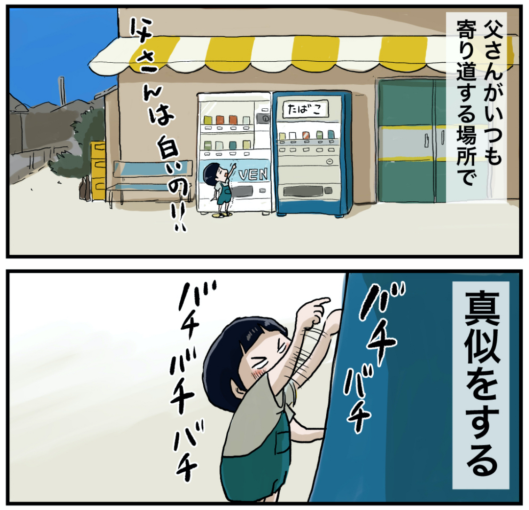 父さんのサンダル 2021年11月06日 父さんのサンダルわざと父のサンダルを履いてよく出かけました。ずりずりと引きずりながら歩くのですが「父さんの足でっけえ」と思いながら父の行動を真似していました。知らないところで子供は真似してますから皆さん気をつけてください 笑 読者登録で応援していただけると飛び跳ねて喜びます!読みやすくまとめました是非他の作品も読んでみてください まだまだ続くよ! 【幼少期のお話】 「いくる(弟)」カテゴリの最新記事 タグ :#思い出#懐かしい#父さん#サンダル < 前の記事次の記事 > コメント コメント一覧 (9) 1. カツヲ 2021年11月06日 12:15 サンダルはめっちゃ勝手に履いてたな~ 中学ぐらいで自分の方が足大きくなったのに気付いたときはちょっと寂しく感じたな…😁 0 仲曽良ハミ がしました 2. ★★★★★ 2021年11月06日 12:19 男子も父の靴(サンダル)に憧れるんですね! 私も母のパンプスを勝手に出して履いては叱られたなぁ(多分高いやつだった) 0 仲曽良ハミ がしました 3. そうた 2021年11月06日 12:29 子供の頃は無条件で両親を慕ってたから父親のサンダルを履くなんて全く問題ないし逆に嬉しかったな。今、父親になり娘達から「お父さんの洗濯物とは別に洗って」と言われる現実…😭 0 仲曽良ハミ がしました 4. らくだまる 2021年11月06日 12:47 エアたばこ!! 真似しました~エアで吸っているところを 父に見られ、失笑されたのは恥ずかしい思い出 0 仲曽良ハミ がしました 5. 昭和55年生まれ 2021年11月06日 14:39 子供の頃は大人のやる事、 全て格好良く思えたもんです。 なぜかタバコを吸う人は イケてる大人だと感じてました。 0 仲曽良ハミ がしました 6. 昭和の名無し 2021年11月06日 17:59 父のサンダル、よく履いてました。 お使い頼まれて、わざとサンダル履いてスーパーへ行ったことも… 今ではそのサンダルとおなじくらいの足になりました🤣 0 仲曽良ハミ がしました 7. asm 2021年11月06日 18:03 は~もう、本当に好き。なんでこんなに心の奥~~の方がギュッてなるのか。 0 仲曽良ハミ がしました 8. 昭和な女 2021年11月06日 19:12 ほんと、いくるくん、可愛いなぁ~ この日常の流れ方が、ほんと昭和を思い出す。 朝ごはん前に近所にこっそりお出掛けしちゃうなんて、平和な時代そのもの。 今なら大騒ぎになっちゃうかも。 でも朝早く起きて時間持て余しちゃう子ども、やっぱり可愛い😊 0 仲曽良ハミ がしました 9. キュン 2021年11月08日 10:14 いくるくん可愛い 0 仲曽良ハミ がしました コメントフォーム 名前 コメント 記事の評価 リセット リセット 顔 星 情報を記憶 コメントを投稿する