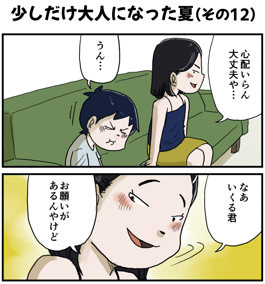 少しだけ大人になった夏(その12) 2022年02月13日 「少しだけ大人になった夏」編を最初から読む 「いくる(弟)」カテゴリの最新記事 タグ :#思い出#懐かしい#ナッちゃん < 前の記事次の記事 > コメント コメント一覧 (18) 1. コーナ 2022年02月13日 12:44 いくる達補導されないでね。 0 仲曽良ハミ がしました 17. あ 2022年02月13日 23:21 >>1 🤫🤫 0 仲曽良ハミ がしました 2. ちむちむ 2022年02月13日 12:47 甘酸っぱいぞ!わくわくする。💖 0 仲曽良ハミ がしました 3. 今夜が山田 2022年02月13日 12:53 すぐに見終わってしまう!足りない!😅 0 仲曽良ハミ がしました 4. あきち 2022年02月13日 12:56 …ステキだ…(●´ω`●) 0 仲曽良ハミ がしました 5. ぴろち 2022年02月13日 13:03 ドキドキとワクワクが、とまらない! 0 仲曽良ハミ がしました 6. ハンバーグ師匠(本物) 2022年02月13日 13:09 アマ〜イ! 0 仲曽良ハミ がしました 7. たぶん同い年 2022年02月13日 13:12 これがいくるの初恋かな? 甘酸っぱいね〜頑張れいくる😄 0 仲曽良ハミ がしました 8. jamam 2022年02月13日 13:14 ワクワクとドキドキが止まらない♡ 懐かしいなーみんなが寝静まった後の家抜け出すのスリルあってドキドキしたなー😌❤️ 0 仲曽良ハミ がしました 9. ヌシ 2022年02月13日 13:17 このシリーズ大好きです💖サイコーーーー🥰 0 仲曽良ハミ がしました 10. 大ちゃん 2022年02月13日 13:25 本にならないかなぁ… 一気読みしたい🥺💕 0 仲曽良ハミ がしました 11. 大ちゃん 2022年02月13日 13:26 本にならないかなぁ🥺💕 一気読みしたい! 0 仲曽良ハミ がしました 12. hide 2022年02月13日 13:36 なんかこーゆー甘酸っぱい青春?いいねぇいくるのいい思い出だね 0 仲曽良ハミ がしました 13. みきてぃ 2022年02月13日 16:18 小学生のいくるくん^^ こんな男の子がいたら、 ヒーローです♪ 甘く切ない青春☺️ 一緒にドキドキしてます♪ 0 仲曽良ハミ がしました 14. S48 2022年02月13日 16:18 面白いし、こんな心に刺さりまくる漫画は久々です。 書籍化アニメ化の話は無いのでしょうか? 0 仲曽良ハミ がしました 15. ひろたか 2022年02月13日 17:44 いつも楽しみに読んでます! 世代が同じ感じで自分の人生も重なるところが多く いくるを読んでは泣き笑いさせてもらってます! これからも応援してます(*^^*) 0 仲曽良ハミ がしました 16. け 2022年02月13日 22:17 なげぇ 0 仲曽良ハミ がしました 18. あ 2022年02月14日 23:23 >>16 ワンピース「それ俺の前でも言えんの?」 0 仲曽良ハミ がしました コメントフォーム 名前 コメント 記事の評価 リセット リセット 顔 星 情報を記憶 コメントを投稿する