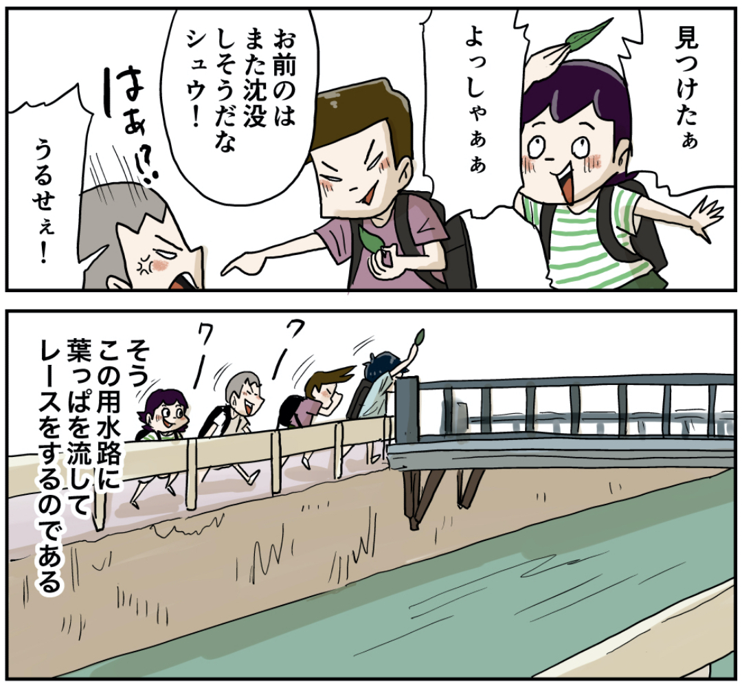 用水路でレース(その1 前) 2022年07月09日 前の話 葉っぱのレースをよくやりましたこの先は皆さん予想できると思いますが色々な障害が待ち受けています! 次の話 ラインで更新をお知らせできます!登録してね!【お知らせ!】『しなのんちのいくる』書籍化決定!!!ご予約はこちらから↓しなのんちのいくる仲曽良ハミKADOKAWA2022-06-23 読みやすくまとめました是非他の作品も読んでみてください まだまだ続くよ!フォロワーさんがガチで選んでくれた好きな話おすすめの長編もあります是非読んでみてください! 「いくる(弟)」カテゴリの最新記事 < 前の記事次の記事 > コメント コメント一覧 (13) 1. たぷたぷあざらし 2022年07月09日 21:32 紅葉した落ち葉を色違いで選んでやりました! 0 仲曽良ハミ がしました 2. フィガロ 2022年07月09日 21:32 用水路にしては広くない? これはもう川だろ川w 跨いだりジャンプで越えれるくらいの用水路しか無かったなー😊 葉っぱレース強かった自分w 0 仲曽良ハミ がしました 8. QB 2022年07月09日 22:28 >>2 用水路と一言で言っても規模は様々ですからね 愛知の大規模漏水した所とかめっちゃ大きかったし 0 仲曽良ハミ がしました 9. ぴぃ 2022年07月10日 00:34 >>2 うちの近所には、このくらいの規模の用水路がありましたよ。 田畑の広がっている地域だったからかも。 水の流れも早く、水深も深いので、大人からは近づくなと言われていましたが ……近づきましたよね、もちろん。 0 仲曽良ハミ がしました 3. たけ 2022年07月09日 21:39 懐かしい! 今でも息子とやってます🤣 0 仲曽良ハミ がしました 4. 陸王 2022年07月09日 21:40 やべぇ、これめっちゃやってたwww いくる達見るまで忘れてましたけど、追いかけるのめっちゃ楽しかったこと思い出しました。 楽しかったんですよねー!🤣🤣🤣 0 仲曽良ハミ がしました 5. たけ 2022年07月09日 21:41 田舎の用水路なめちゃあいけない。 川並みに広いところあり。笑 0 仲曽良ハミ がしました 6. フリースタイル 2022年07月09日 22:21 オイも、こい、よぐやったな。 0 仲曽良ハミ がしました 7. 名無し丸 2022年07月09日 22:27 小さい頃の記憶が呼び起こされた… すぐ沈没したり、ちょっと目を離した隙に 行方がわからなくなったり… 0 仲曽良ハミ がしました 10. すぺらんか 2022年07月10日 01:49 自分の舟(葉)が沈んでいくときの切なさよ、、 0 仲曽良ハミ がしました 11. くまとり 2022年07月10日 09:36 私のとこは用水路や川が無かったので やったことはありませんが、やったことあるよう懐かしさ。。なぜだ。。 0 仲曽良ハミ がしました 12. がお 2022年07月10日 10:29 田んぼの横の細い用水路でよくやりました♪ 懐かしい記憶が思い出されてワクワクします! 0 仲曽良ハミ がしました 13. 2022年07月10日 12:22 船作って流したのが懐かしい 田んぼも用水路も昔に比べたら少なくなってしまいましたが 0 仲曽良ハミ がしました コメントフォーム 名前 コメント 記事の評価 リセット リセット 顔 星 情報を記憶 コメントを投稿する
