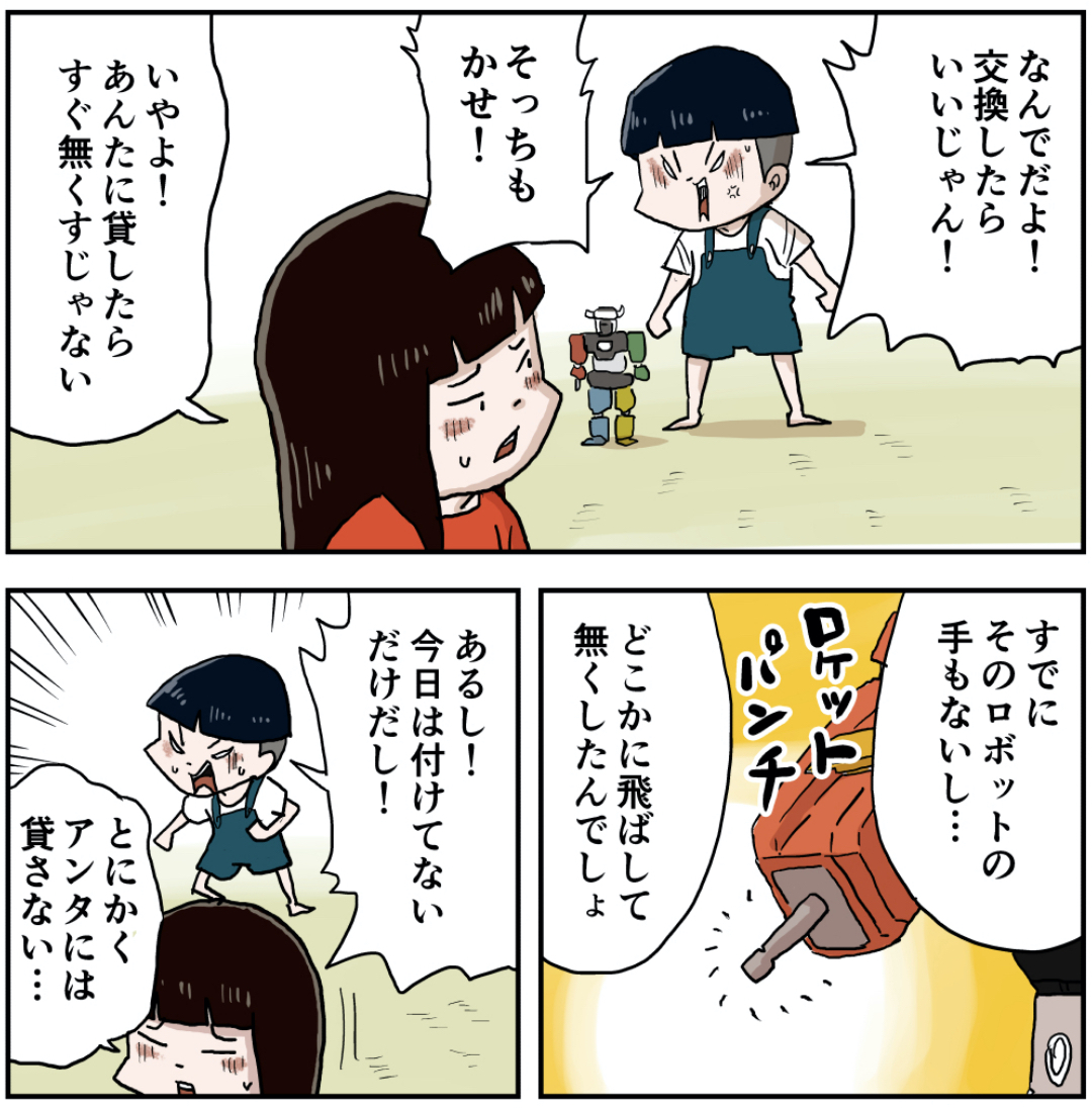 リカちゃんとしなの(その1 後半) 2022年08月08日 前の話 次回!しなのが美容師に! リカちゃんの運命やいかに! 次の話 ラインで更新をお知らせできます!登録してね!【お知らせ!】『しなのんちのいくる』書籍化決定!!!書籍限定書き下ろしストーリーも多数収録!さらによゐこ濱口さんとコラボ漫画収録! 読みやすくまとめました是非他の作品も読んでみてください まだまだ続くよ!フォロワーさんがガチで選んでくれた好きな話おすすめの長編もあります是非読んでみてください! 「しなの(姉)」カテゴリの最新記事 < 前の記事次の記事 > コメント コメント一覧 (22) 1. よしひろ 2022年08月08日 16:31 しなのちゃん! それは考えてもやったらあかんやつやでww うちの妹も昔リカちゃんのばったもんやけどジェニーちゃんの毛切って結果的に瀬戸内寂聴先生カットなってもたから… 0 仲曽良ハミ がしました 2. みい 2022年08月08日 16:40 しなのちゃ〜んだめだよぉ💦それあるあるらしいですが、私は父の命令で後頭部刈り上げのおかっぱ(ワカメちゃん)だったのでリカちゃんのロングヘアは命の様にブラッシングしていました。切っちゃダメ‼️ 0 仲曽良ハミ がしました 3. そうた 2022年08月08日 17:03 素晴らしい!相手の世界に平気で土足で踏み込んで物おじせず自分の価値観で取引する安定のいくる🤣 0 仲曽良ハミ がしました 4. 45さい 2022年08月08日 17:06 イヤな予感しかしない笑笑 0 仲曽良ハミ がしました 5. ゆうみ 2022年08月08日 17:11 あーあーあー( ; ; ) しなのちゃん、、リカちゃんの髪は伸びてこないんだよおぉ(身に覚えあり) 0 仲曽良ハミ がしました 6. ヒトギリ 2022年08月08日 17:16 いくるが ショートカットになる 気がしてならない 姉の理不尽だった ことは トラウマです 0 仲曽良ハミ がしました 7. カツヲ 2022年08月08日 17:25 いくるくんがなんか最近の子っぽい口調になってる気がする…😁 0 仲曽良ハミ がしました 8. ペンペン草 2022年08月08日 17:28 いくると同じ血が流れてるんだよね? イヤな予感。 0 仲曽良ハミ がしました 9. にーだ 2022年08月08日 17:43 しなの、右脚の青獅子には、途中からお姫様が載るんだよ 0 仲曽良ハミ がしました 10. FF 2022年08月08日 18:05 リカちゃん、なにげに冷や汗かいてるw 0 仲曽良ハミ がしました 11. たま 2022年08月08日 18:18 嫌な予感しかしない 0 仲曽良ハミ がしました 12. sk 2022年08月08日 19:00 カットできるオモチャあったよなー 0 仲曽良ハミ がしました 13. たも 2022年08月08日 19:05 幼い2人がとても可愛い。 0 仲曽良ハミ がしました 14. うーやん 2022年08月08日 19:25 何だかイヤな予感がする…(ー_ー;) 0 仲曽良ハミ がしました 15. ひなのんちのまさる 2022年08月08日 19:26 りかちゃんピーンチ!笑 0 仲曽良ハミ がしました 16. S51 2022年08月08日 19:49 あぁぁぁ 私も子どもの頃 やったわ… そこらへんの工作用みたいな✂️じゃ全然切れなくて、ザンバラの落武者になった記憶が。 切っちゃダメ、でもやっちゃうんだよなぁ😭 0 仲曽良ハミ がしました 17. ナナシの料理人 2022年08月08日 21:57 しなのって手先が器用なイメージないけど、大丈夫かしらw?リカちゃんも不安なのか冷や汗かいとるし…💦 0 仲曽良ハミ がしました 18. 椎名ちゃん 2022年08月09日 00:09 それはダメなフラグだ・・・・・・( ̄▽ ̄;) 0 仲曽良ハミ がしました 19. ひろちゃん 2022年08月09日 10:36 あぁ~ 嫌な予感しかしない笑 かつてやってしまった私が蘇る😅 0 仲曽良ハミ がしました 20. だいこんさん 2022年08月09日 12:24 この時代のロボットってかなりの確率でロケットパンチになってて、腕の横に付いてる安易なスイッチがすぐに作動してしまう。発射する意思がないのに誤発射しそれ故にどこに飛んだかなんてみてないから紛失。気づいたらなくなってる事すらある。 自分は男なのですが姉と妹がいたのでリカちゃんも家にありました。ガタガタの髪型のリカちゃんが(笑) つい最近では温度差で色が変わる物もあり、友達の子供にプレゼントしたその日に、髪の毛の色を変えるように子供に頼まれた友達がめんどくさがってドライヤーで試みたところ近すぎて見事にチリチリパーマになったと連絡が来ました。 0 仲曽良ハミ がしました 21. 2022年08月09日 15:11 >>20 本来ついてないロケットパンチになってるんですよね! ガンダムとかそうだったし 0 仲曽良ハミ がしました 22. ぱぴこ 2022年08月11日 19:48 私の思い出だけど、バービー欲しかったんだけどなんだかんだリカちゃんになったんだよね🤔 何故なのかは未だ不明w 0 仲曽良ハミ がしました コメントフォーム 名前 コメント 記事の評価 リセット リセット 顔 星 情報を記憶 コメントを投稿する