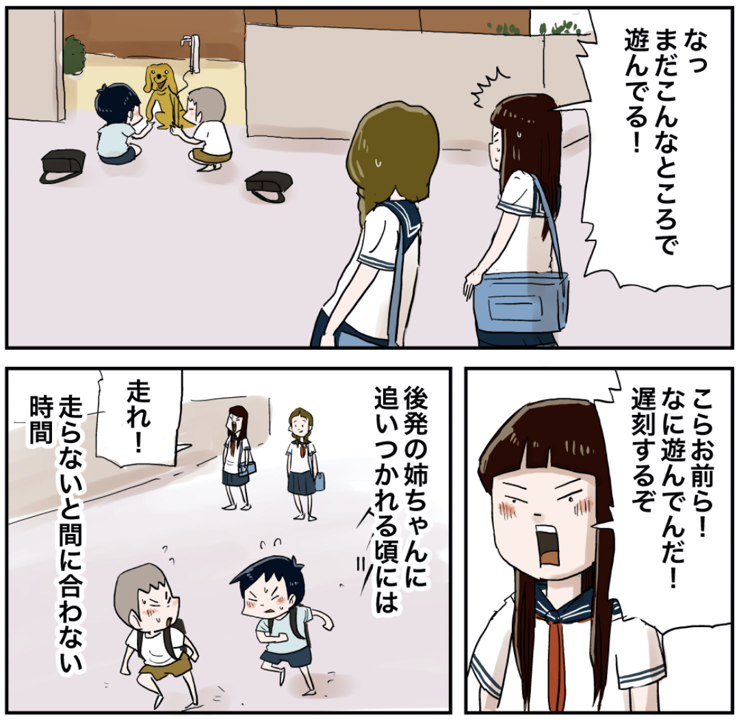 中学生の姉ちゃんより、早く家を出る小学生……お~い、朝からどんだけ遊ぶんだ~と吹いてしまいました!