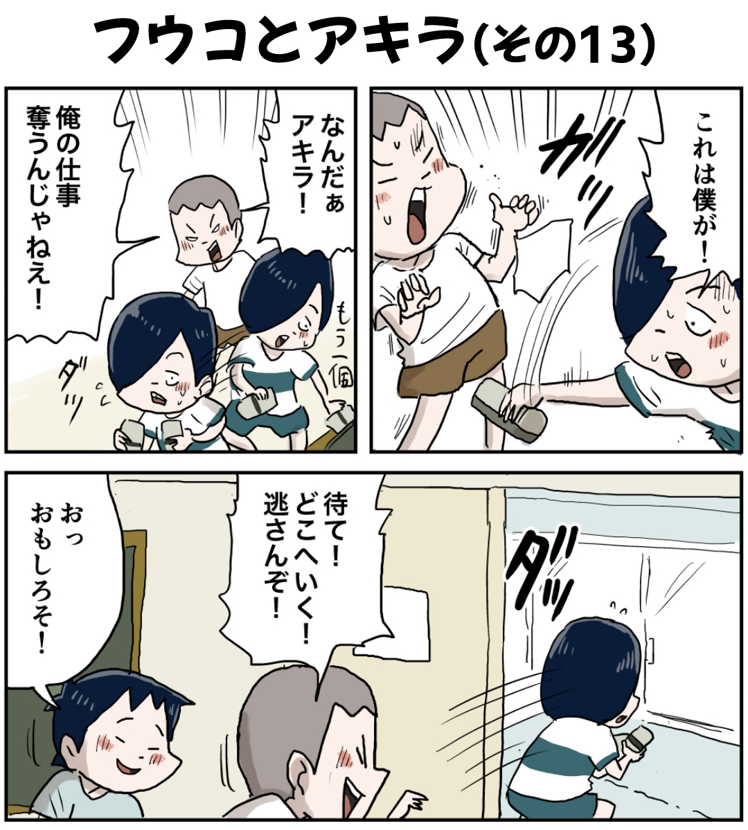 フウコとアキラ(その13 前編) 2022年12月03日 フウコとアキラ編を最初から読む 前の話 アキラはどっか走って行ったぞ? ラインで更新をお知らせできます!登録してね!【お知らせ!】『しなのんちのいくる』書籍化決定!!!書籍限定書き下ろしストーリーも多数収録!さらによゐこ濱口さんとコラボ漫画収録! 読みやすくまとめました是非他の作品も読んでみてください まだまだ続くよ!フォロワーさんがガチで選んでくれた好きな話おすすめの長編もあります是非読んでみてください! 「ふうこ」カテゴリの最新記事 < 前の記事次の記事 > コメント コメント一覧 (13) 1. なす 2022年12月03日 15:37 フウコの張り手、がぶりより。いい! 0 仲曽良ハミ がしました 2. kyakya 2022年12月03日 15:44 シュウ、かわいそうやけどワロターwww いくる笑いすぎwww 0 仲曽良ハミ がしました 3. tama 2022年12月03日 15:57 やっぱ黒板消しは叩かないとなあ 0 仲曽良ハミ がしました 4. FF 2022年12月03日 17:58 アキラがそこまでして黒板消しにこだわる理由が皆目見当付かない。 なんだかアキラがタクに見えてきたぞw 0 仲曽良ハミ がしました 5. たぬき 2022年12月03日 18:10 シュウ、災難💦お疲れさま…😩 ふうちゃんの愛の力は強いなぁ😳 0 仲曽良ハミ がしました 6. まゆみ 2022年12月03日 19:11 フウコ、これはもはら障害事件だ…… 0 仲曽良ハミ がしました 7. 40代おっさん 2022年12月03日 19:41 「張り手かまさなくても伝わるぞ」に、ほっこり。 0 仲曽良ハミ がしました 8. あばば 2022年12月03日 21:38 シュウの受難は続く… 0 仲曽良ハミ がしました 9. ま 2022年12月03日 22:21 窓から叩きたい! 0 仲曽良ハミ がしました 10. 決まり手 2022年12月04日 00:06 フウコ、突き倒しで勝ち🖐 0 仲曽良ハミ がしました 11. PIKA 2022年12月04日 18:02 シュウがシュウが🤣 吹き出して笑ってたら、子が寄ってきたw 0 仲曽良ハミ がしました 12. 椎名ちゃん 2022年12月04日 23:13 フウコ必殺 どす恋 がシュウに炸裂した!! 0 仲曽良ハミ がしました 13. ( ꒪⌓꒪) 2022年12月07日 03:28 シュウ!私は夏祭りであぶれたり、顔面でシュート止めたり、張り手で吹っ飛ばされたりするシュウが好きだよ! 最近のフウちゃんはちょっとやりすぎて怖い。 0 仲曽良ハミ がしました コメントフォーム 名前 コメント 記事の評価 リセット リセット 顔 星 情報を記憶 コメントを投稿する