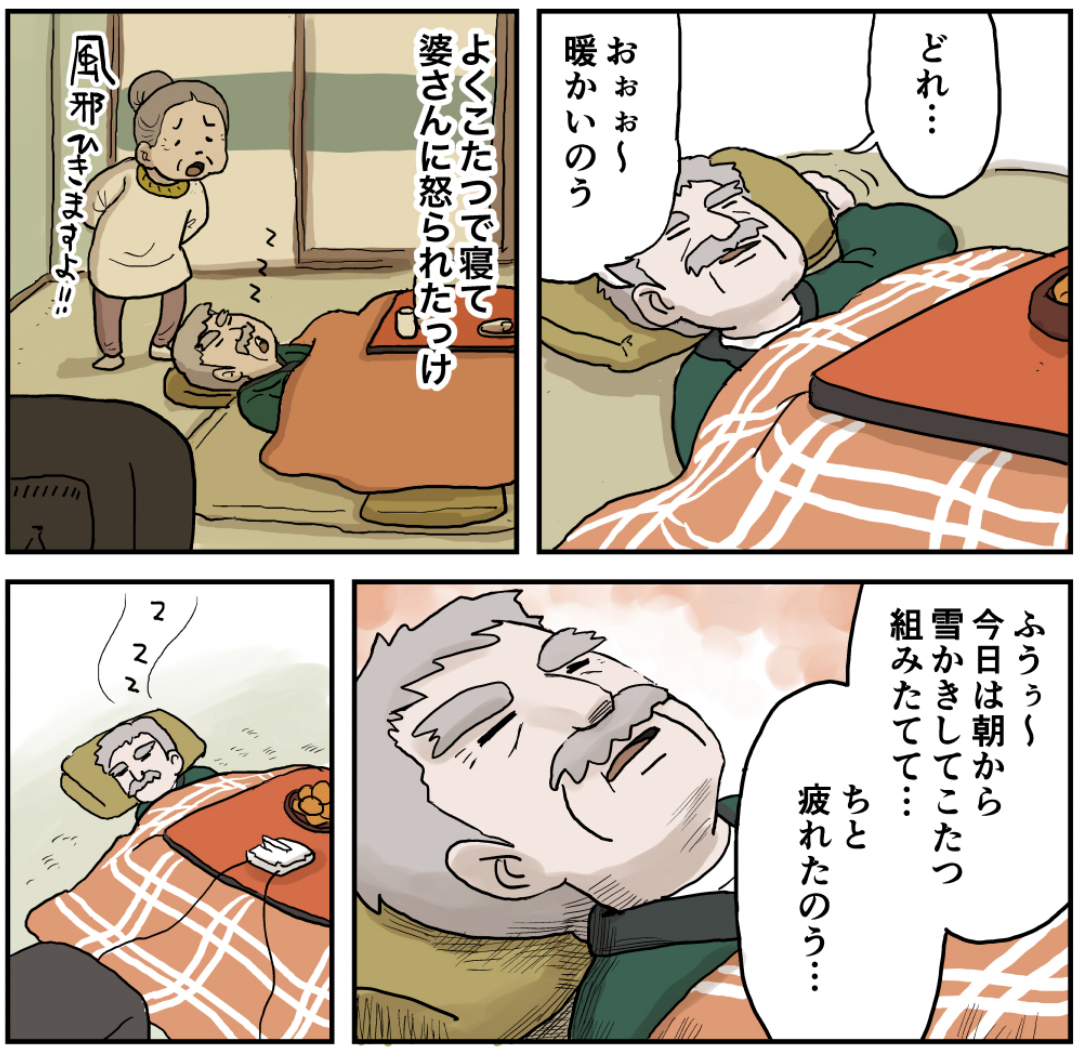 最近の鬼塚さん(その3 後編) 2023年01月05日 最近の鬼塚さん編を最初から読む 前の話 ラインで更新をお知らせできます!登録してね!作者おすすめの過去作品書籍化決定!!!書籍限定書き下ろしストーリーも多数収録!さらによゐこ濱口さんとコラボ漫画収録! 他の作品も読んでみてね! まだまだ続くよ! 「鬼塚さん」カテゴリの最新記事 < 前の記事次の記事 > コメント コメント一覧 (29) 1. ハメスギロドリゲス 2023年01月05日 20:08 やめろ、泣かせる気だろ。。泣かないぞ!!絶対泣かないぞ!! 0 仲曽良ハミ がしました 2. たけ 2023年01月05日 20:10 このまま…ってパターンだけは勘弁をー!! 0 仲曽良ハミ がしました 3. 原告側のたぬきさん 2023年01月05日 20:11 夢であってくれ!! 三途の川とかはまだやめてくれ! 0 仲曽良ハミ がしました 4. りこ 2023年01月05日 20:17 夢に出てきてくれるとか…もう既に涙…😢 鬼塚さん、夢の中で、奥さんに褒められてますように(*^_^*) 0 仲曽良ハミ がしました 5. ガンプラくん 2023年01月05日 20:32 鬼塚さん サイコーだな😆 0 仲曽良ハミ がしました 6. あっこら 2023年01月05日 20:35 ひいばあがコタツで寝て 脱水でそのままお空に行ったから フラグじゃない事だけ祈る 0 仲曽良ハミ がしました 7. FF 2023年01月05日 20:42 鬼塚さん、大丈夫だよね、逝かないよね? 奥さんとひと時豊かな時間過ぎしたら、 「おじいさん、子供たちが待ってますよ」って奥さんが背中押してくれるよね。 0 仲曽良ハミ がしました 8. エミ 2023年01月05日 20:47 ハッピーエンドで泣かせてください 0 仲曽良ハミ がしました 9. え?これってまさかの?? 2023年01月05日 20:48 (涙)展開フラグですか???? 0 仲曽良ハミ がしました 10. 白 2023年01月05日 20:50 ばあちゃん😭 0 仲曽良ハミ がしました 11. そうた 2023年01月05日 20:52 このペースじゃ夕方に子供達が来てもスライム退治のトコから進んでないぞ🤣 0 仲曽良ハミ がしました 12. さくら 2023年01月05日 21:04 やだもうみんな同じ事言ってる。 私も同じ事思った、まさかこのまま・・・なんて事言わないで 0 仲曽良ハミ がしました 13. さささ 2023年01月05日 21:06 鬼塚さん大好き!! だけど、じいちゃんなだけに、夢枕にばあちゃん立たれると変な意味でドキドキしちゃう! タクちゃんあたりが勝手に家に入ってきて、じいちゃんたたき起こしてくれー! 0 仲曽良ハミ がしました 14. F 2023年01月05日 21:27 これ、三途の川渡る流れやん。 アカンで。アカンで(´・ω・`) 0 仲曽良ハミ がしました 15. だいこんさん 2023年01月05日 21:32 コタツでゲーム。確かに最高だけどコードにつまずいてバグる確率アップしちゃうんですよね(^-^; 0 仲曽良ハミ がしました 16. 2023年01月05日 21:35 新年早々にそんな展開描くわけないじゃん。それに鬼じぃは結構重要なキャラだし。子供達の成長に欠かせない重要な役割だし。そんなキャラここで終わらせる訳ないじゃん。 0 仲曽良ハミ がしました 17. たまみ 2023年01月05日 21:38 ……何か嫌な予感がするんだけど お婆ちゃん!鬼塚さんを連れてかないでよ〜 0 仲曽良ハミ がしました 18. のりっく 2023年01月05日 22:00 え?まさかこのまま死なないよね!? 0 仲曽良ハミ がしました 19. ヒデじい 2023年01月05日 22:10 昭和だね~ 0 仲曽良ハミ がしました 20. おもち 2023年01月05日 22:14 この後…『鬼さーんあそーぼー😆✨』って いくるたちがやって来て皆んなでわちゃわちゃ♬ するのかな☺️コタツにミカン🍊にゲーム🎮✨ コレぞ‼️由緒正しき昭和の冬☃️❄️ 0 仲曽良ハミ がしました 21. ハミさん、それだけは、ダメ! 2023年01月05日 22:27 鬼塚さん、まだ逝かないで! 鬼塚さんがここで逝く展開になったら、 読者として、気持ちの持っていきようがありません! 0 仲曽良ハミ がしました 22. やべえ 2023年01月05日 23:02 あれ?お迎えかな? 0 仲曽良ハミ がしました 24. 42 2023年01月06日 07:34 え、え、ま、まさか? いやそのまさかかもしれない 0 仲曽良ハミ がしました 25. アラカン 2023年01月06日 08:32 ちょっと!ちょっと!ちょっとーーー! 0 仲曽良ハミ がしました 26. あばば 2023年01月06日 09:04 皆さん昇天フラグと感じててw 0 仲曽良ハミ がしました 27. あちゃへい 2023年01月06日 10:14 ハッピーエンド希望 0 仲曽良ハミ がしました 28. ゆっきー 2023年01月06日 11:08 タク!じいさん逝く前に叩き起こせ!!! 0 仲曽良ハミ がしました 29. 2023年01月06日 20:28 もう鬼塚さん可愛い これに尽きる 0 仲曽良ハミ がしました 30. しなのファン 2023年01月09日 19:41 雪だるまが崩れていて なんか悲しいですね😭 0 仲曽良ハミ がしました コメントフォーム 名前 コメント 記事の評価 リセット リセット 顔 星 情報を記憶 コメントを投稿する
