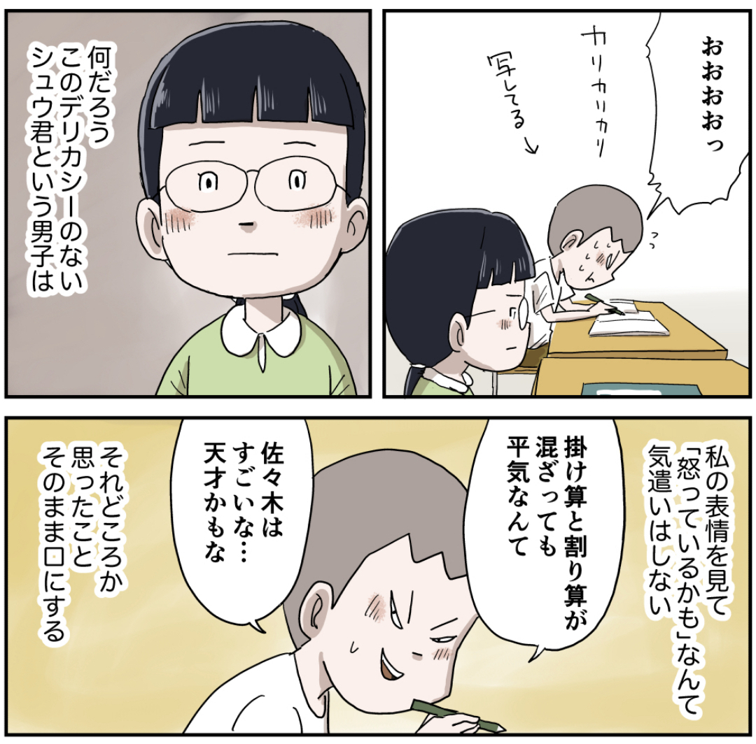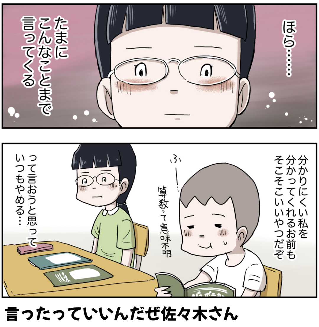 佐々木さんとシュウ(その2 後編) 2023年04月10日 初めての方へ登場人物紹介 佐々木さん編を最初から読む ラインで更新をお知らせできます!登録してね!作者おすすめの過去作品他の作品も読んでみてね! まだまだ続くよ! 「シュウ」カテゴリの最新記事 タグ :#漫画#マンガ#昭和#小学生 < 前の記事次の記事 > コメント コメント一覧 (19) 1. junkrocky 2023年04月10日 15:56 意外な理解者同士ですね🤔 0 仲曽良ハミ がしました 2. ept 2023年04月10日 16:21 言ってもいいんやで 0 仲曽良ハミ がしました 3. そうた 2023年04月10日 16:41 シュウよ、ノートを借りといて「分かりにくい」はないだろ🤣 0 仲曽良ハミ がしました 4. たま 2023年04月10日 16:58 空気を読めない野郎がグイグイ来る。 0 仲曽良ハミ がしました 5. さよよ 2023年04月10日 17:07 いいコンビだな~~✨ 楽なのが一番! 0 仲曽良ハミ がしました 6. えみ 2023年04月10日 17:35 うんうん🤭いい感じですね🙌 0 仲曽良ハミ がしました 7. ルー 2023年04月10日 17:51 デリカシーの無さじゃ誰にも負けないシュウだもん!気を許していいんだよ(*´-`) 0 仲曽良ハミ がしました 8. 憧れのアバンテ 2023年04月10日 18:23 どちらかと言えば、引っ込み思案な性格の自分にとって、シュウみたいに土足でズカズカ踏み込んでくるタイプは苦手だった反面、憧れる部分もあったな 0 仲曽良ハミ がしました 9. 椎名ちゃん 2023年04月10日 19:50 ほーらシュウ 射止めてるやん ( ∩'-' ) =͟͟͞͞➳❥) *´д`)ズキュゥゥン♡ 0 仲曽良ハミ がしました 10. 巴里 2023年04月10日 20:05 佐々木さんはメガネを外したら多分超ベッピンさんなんやろうね👓 0 仲曽良ハミ がしました 11. ぴぴろち 2023年04月10日 20:09 きた!シュウ! みんな凸凹だけど、みんないいとこあって、 みんないい奴ですよね( ´∀`) 0 仲曽良ハミ がしました 12. 鳴海 2023年04月10日 20:21 年齢重ねたら、一緒にいて疲れない人の方が長く友達でいられるんよね☺️ 0 仲曽良ハミ がしました 13. ギィ 2023年04月10日 20:27 クラスにひとりはいたって言う新キャラ! 0 仲曽良ハミ がしました 14. ダズル迷彩 2023年04月10日 21:19 かぶせ気味の「やだ」w 0 仲曽良ハミ がしました 15. FF 2023年04月10日 21:22 確かに算数は意味不明 0 仲曽良ハミ がしました 16. さささ 2023年04月11日 02:43 シュウはいくるより3割増くらいでノンデリカシーだけど、やっぱいいやつなんだよなー。ガサツだしアホなんだけど、分け隔てなくていいやつなんだよなー。ゴムとびするしなのちゃんのパンチラ覗いて喜んだり、どさくさに紛れてしなのちゃんに抱きついたりするスケベだけど、いいやつなんだよなー。 0 仲曽良ハミ がしました 17. めめめ 2023年04月11日 07:34 あいみょんの歌に出てきそうなキュンキュン、展開楽しみ(๑>◡<๑) 0 仲曽良ハミ がしました 18. よ 2023年04月11日 11:22 佐々木さん、めっちゃおもろい子! こういう人の味は、ある程度の年齢にならないと周りにわかってもらえないし、自分でもなかなか開示できないものなんですよね 0 仲曽良ハミ がしました 19. 寿司🍣 2023年04月11日 16:31 今年の夏祭り編はシュウ仲間はずれにならないお話読みたいぞ? 0 仲曽良ハミ がしました コメントフォーム 名前 コメント 記事の評価 リセット リセット 顔 星 情報を記憶 コメントを投稿する