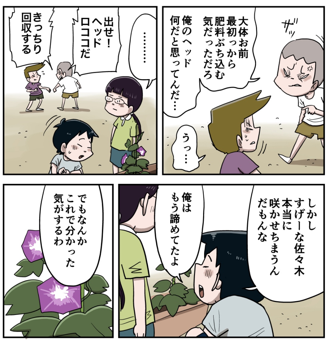 佐々木さんとジョウロさん(その12 後編) 2024年04月24日 『佐々木さんとジョウロさん』編を最初から読む 佐々木チームの完全勝利!ジョウロさんを知らない方はこちら 佐々木さんを知らない方はこちら 「佐々木さん」カテゴリの最新記事 タグ :#漫画#マンガ#昭和#小学生 < 前の記事次の記事 > コメント コメント一覧 (29) 1. そうた 2024年04月24日 16:52 マルコメはさっきまで机の上でグッタリしてたハズなのにここぞとばかりにミツルに対して強気だな。佐々木さんを信じてただけで何もしてないクセに😆 0 仲曽良ハミ がしました 2. まめのしずく 2024年04月24日 16:55 佐々木ちゃん!さいこーやわ めっちゃ嬉しい♡ 0 仲曽良ハミ がしました 3. デブソン21 2024年04月24日 17:04 そう言えばうしろのオヤジがグリーンカーテンに黒いの被せてんな🌿😁 0 仲曽良ハミ がしました 4. 卍丸 2024年04月24日 17:11 理科とシュウに対する愛の勝利だな❤️ 0 仲曽良ハミ がしました 25. みず 2024年04月26日 01:12 >>4 シュウへの愛じゃなくて植物への愛情だろ?ちゃんとマンガ読んでる? 0 仲曽良ハミ がしました 26. あー 2024年04月26日 03:45 >>25 佐々木ちゃんは、シュウくん好きだよ?? 0 仲曽良ハミ がしました 5. ゆ 2024年04月24日 17:13 なんか素敵な関係性だなあー。 0 仲曽良ハミ がしました 6. さくら 2024年04月24日 17:15 佐々木ちゃんはミツルにどうして早く花を早く咲かせたのか説明しようとしている。 隠しておくべき不正ではなく、学校で習うところの基礎と発展の、発展の領域だと思った。 0 仲曽良ハミ がしました 7. ぬ 2024年04月24日 17:26 シュウは好きだろうけど気がついてないよなぁ 近くにしなのちゃんという憧れのお姉さんもいるし 0 仲曽良ハミ がしました 18. 椎名ちゃん 2024年04月24日 22:38 >>7 同じ好きでも友好と憧れのベクトル違いだよね しなのと佐々木さんへは 0 仲曽良ハミ がしました 8. いちごの神様いち 2024年04月24日 17:39 いくる違うぞ! 佐々木ちゃんはシュウのこと好きだけどシュウが好きなのはお前のねえちゃんやぞww 0 仲曽良ハミ がしました 17. 椎名ちゃん 2024年04月24日 22:36 >>8 好きにも色々あるんだよ。 懸想してないだけで 友情と信頼がカンストしているのは間違いないし、それは"好き"でないと到らないんだ。 0 仲曽良ハミ がしました 9. みか 2024年04月24日 17:41 小学生男子には、乙女心わからないよねー ジョウロさんに頼る佐々木ちゃんの一途さがよい💖 0 仲曽良ハミ がしました 10. まる 2024年04月24日 17:47 いくる何んかカッコ良い😊 0 仲曽良ハミ がしました 11. あばば 2024年04月24日 19:30 ヘッド貰うまでミツルのヘッドは離さないw 0 仲曽良ハミ がしました 12. 今岡 2024年04月24日 19:45 佐々木さん達の班が勝って良かったです。 0 仲曽良ハミ がしました 13. おもちもちもち 2024年04月24日 21:08 一コマめのシュウの言葉にならない感動の表情に、つられて込み上げるものが… シュウも佐々木さんも本当に良かったね! 0 仲曽良ハミ がしました 14. 名無し 2024年04月24日 21:52 そこは「愛の力だ~‼️」と言ってくれシュウ 0 仲曽良ハミ がしました 19. 😽 2024年04月24日 22:39 >>14 朝顔への? 0 仲曽良ハミ がしました 15. 平知盛 2024年04月24日 22:28 佐々木さん 良い子だなあ 0 仲曽良ハミ がしました 16. 椎名ちゃん 2024年04月24日 22:33 好きかどうかは兎も角として バッチリ信頼してるよな。 0 仲曽良ハミ がしました 20. シン 2024年04月25日 04:18 ミツルはジョウロ親父と相性悪いな、殴られるし、間接的だけど結果としてヘッド取られるし笑 0 仲曽良ハミ がしました 21. むな 2024年04月25日 05:56 実験好きの佐々木さんとしては2株あるなら、袋を被せた方と被せない方の違いも知りたかったかもしれないけど、シュウを確実に勝たせたいから両方ちゃんと被せて勝利に導いたね。 0 仲曽良ハミ がしました 22. 2024年04月25日 11:40 いくるよ そこは言わずが花ってやつさ 0 仲曽良ハミ がしました 23. 砂糖 2024年04月25日 16:53 佐々木さんとシュウは中学生になったら付き合えば良い。で、大人になったら結婚して欲しい🎵 で、シュウは佐々木さんの尻に敷かれていれば家庭円満😁 年寄り二人と佐々木さんのトリオがまた見たいです。ジョウロさん、何気に理系の人?佐々木さんと師弟コンビが最高です。 0 仲曽良ハミ がしました 24. 抜け穴 2024年04月25日 17:35 最近ご無沙汰してた。一気見。学校では教えてくれない将来の方向も左右する出来事をジョウロジジイに教えて貰った佐々木さん。お似合いだよお二人さん 0 仲曽良ハミ がしました 27. ジョロおじ 2024年04月26日 13:06 肥料効かせるといつまでも栄養成長し続けて開花遅れるから、無肥料+短日処理が最速じゃ 0 仲曽良ハミ がしました 28. 葱 2024年04月26日 13:57 小学生が朝顔育てる話でこんなに胸熱になるなんて思わなかったです。好き 0 仲曽良ハミ がしました 29. ひろみ 2024年04月29日 20:52 もぉみんなまとめて可愛い!!! 愛しい!!! 好きー!!! 0 仲曽良ハミ がしました コメントフォーム 名前 コメント 記事の評価 リセット リセット 顔 星 情報を記憶 コ