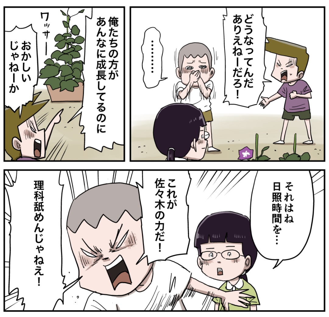 年寄り二人と佐々木さんのトリオがまた見たいです。ジョウロさん、何気に理系の人?佐々木さんと師弟コンビが最高です。