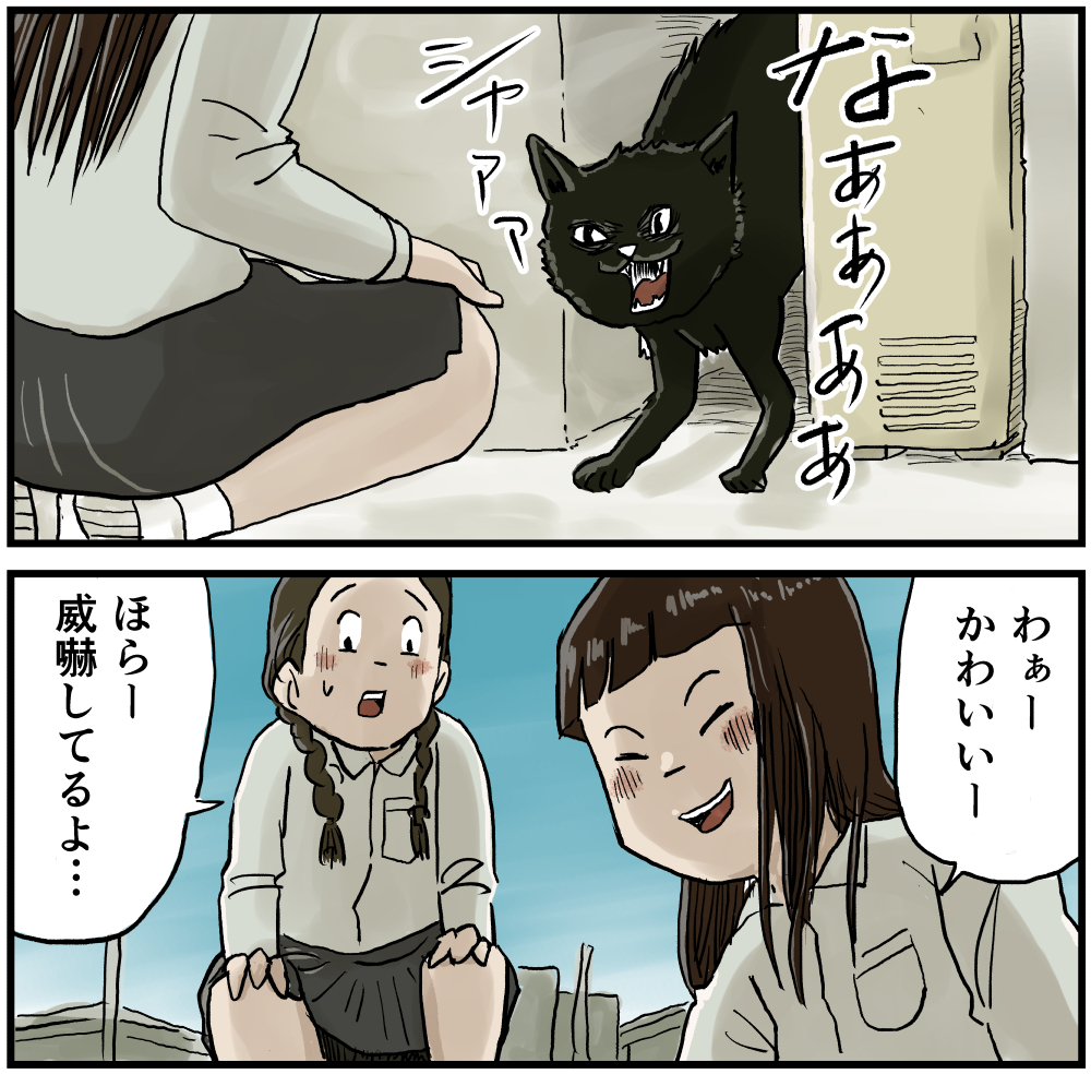 しなのとネコ様 2021年05月30日 姉ちゃんとクロちゃん 森下家ではペットは禁止なのですが、しなのはネコが大好きです。いつもノラとどう仲良くなるかを考えているので準備には余念がありませんね…。しかし前向き…良くも悪くも自分の都合のいいように物事を解釈してしまうところ少し羨ましいですね 笑でもね、みっちゃんの家にはネコいるんですよ。ネコの判断はしなのよりみっちゃんのほうが正確なんですよ。 「しなの(姉)」カテゴリの最新記事 タグ :#漫画#マンガ#懐かしい#あの頃#思い出#絵日記#昭和#平成#猫#ネコ < 前の記事次の記事 > コメント コメントフォーム 名前 コメント 記事の評価 リセット リセット 顔 星 情報を記憶 コメントを投稿する